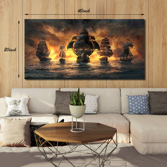 Sorventina Ghost Pirate Ship Decorations Art Prints- Pirate Wall Art, Nautical Sailboat Canvas Art Painting for Man Cave, Bar, Conquistador Poster Large Wall Art Pirate Pictures (40x20, Framed)…