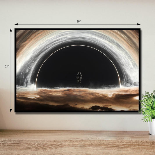 Sorventina Astronaut Black Hole Interstellar Poster - Framed Canvas Wall Art, Large Size Space Decor for Living Room, Boy Room, Home - Cool Aesthetic Astronomy Planet - Black Art (Universe, 36x24in.)